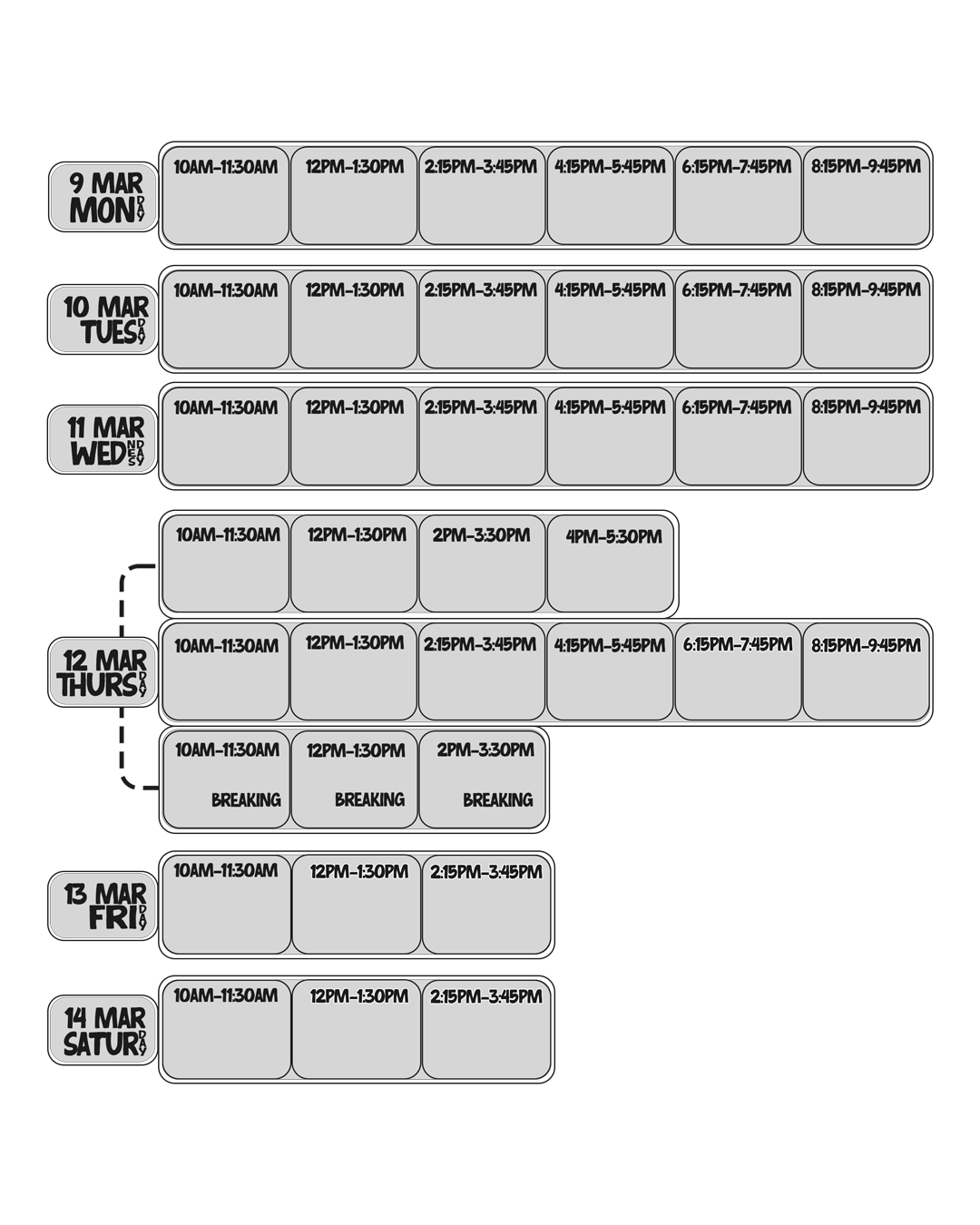 - 13 Mar, Fri: Bionic Boogie Battle | Open-Styles & Breaking 7-to-Smoke (Open & Junior Categories)